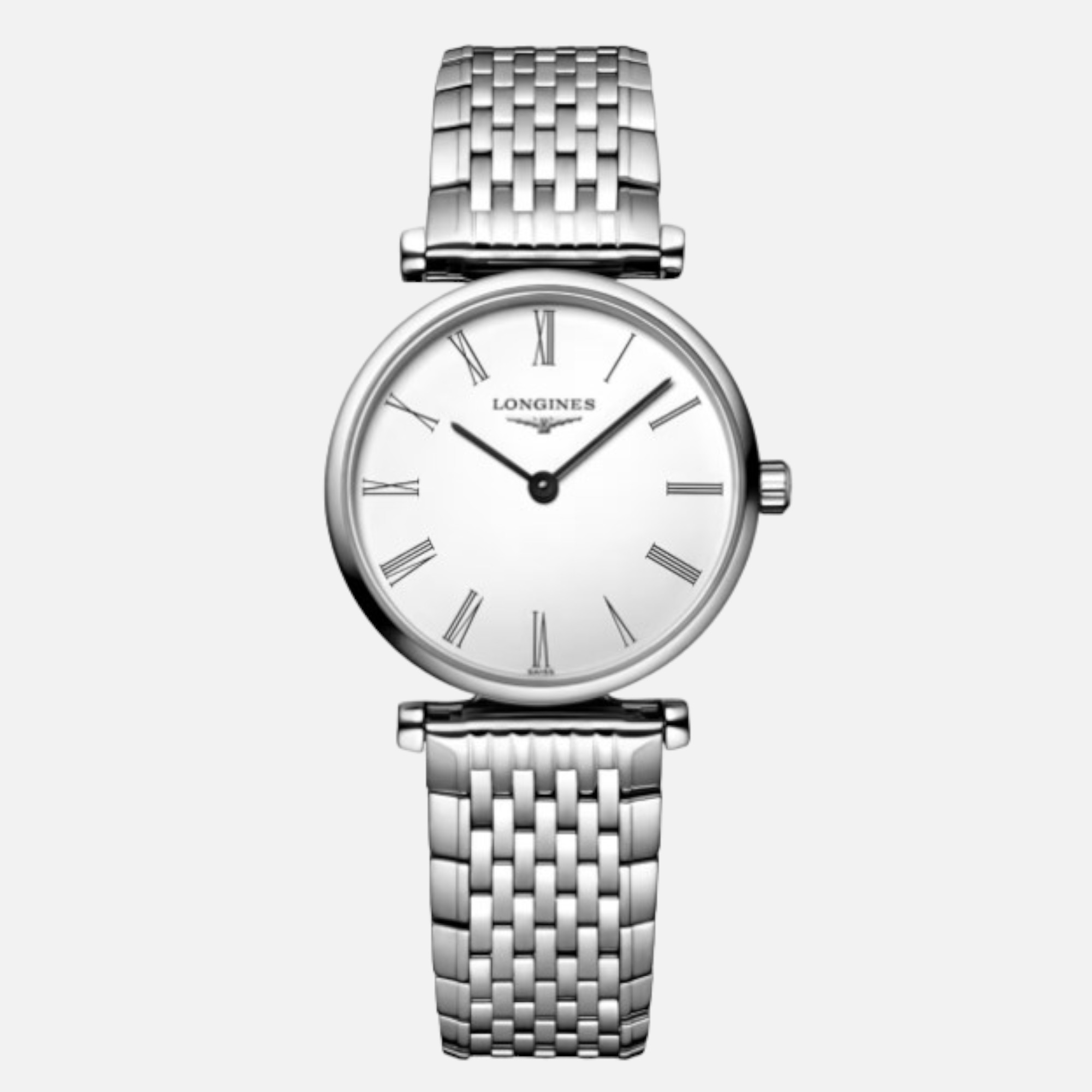 The Longines La Grande Classique de Longines features a refined 24 mm stainless steel case that exudes understated elegance. Its slim profile and polished finish make it a versatile accessory, suitable for both formal occasions and everyday wear.