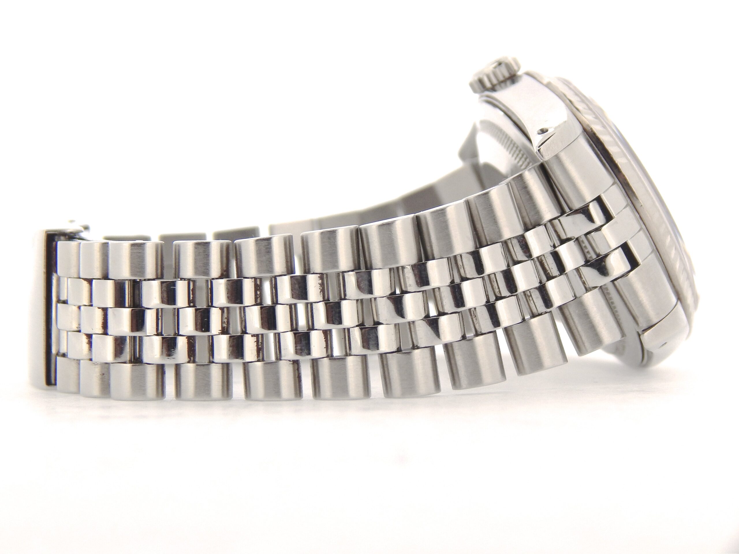 Rolex stainless steel Jubilee bracelet with Rolex signed clasp has moderate stretch/wear between the links |