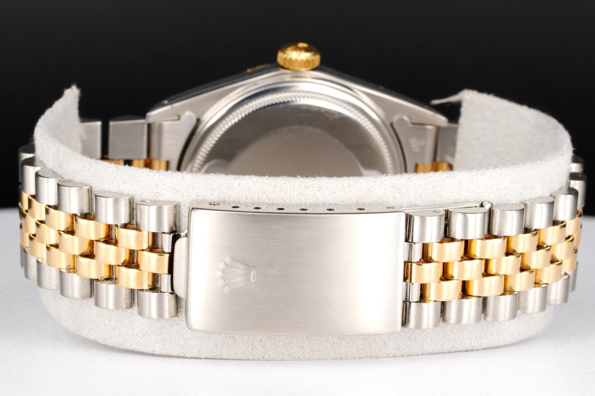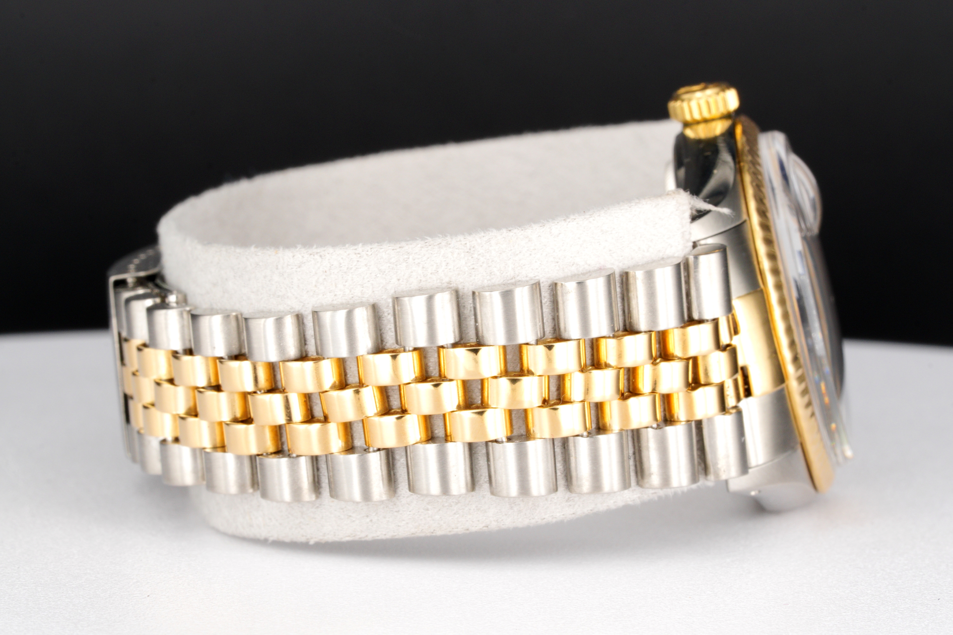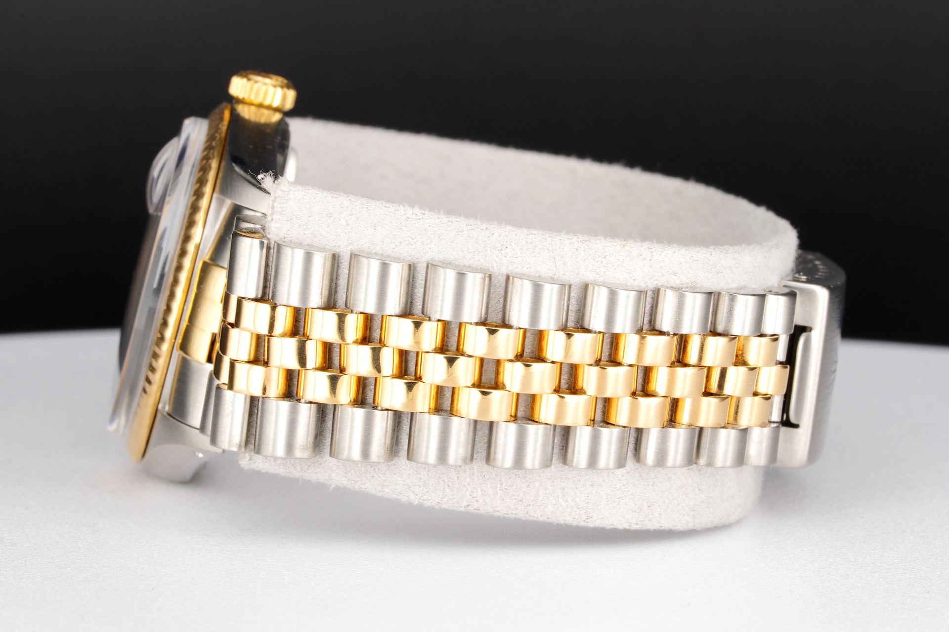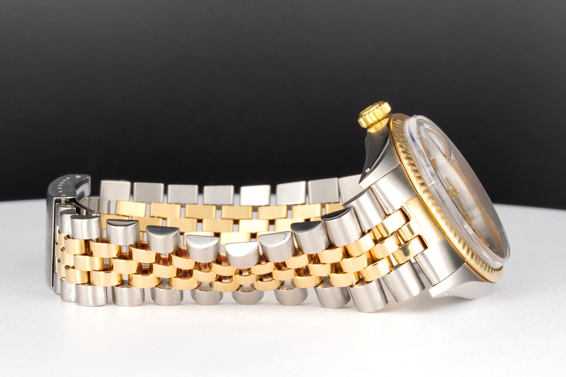 Bezel Rolex 18k yellow gold FLUTED bezel is in fair condition; Flutes are rounded from being polished over the years.