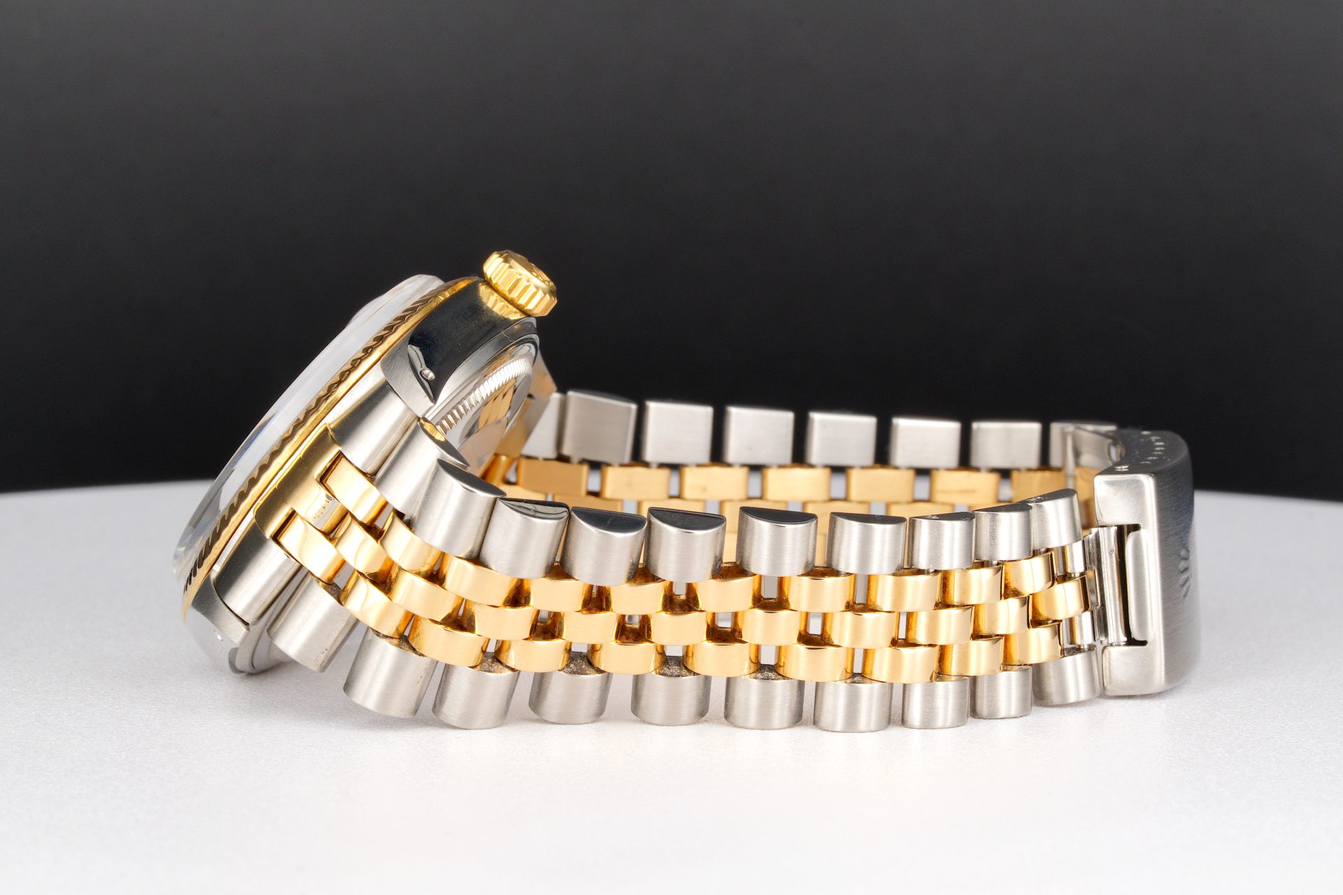 Band Rolex 2tone 18k yellow gold and stainless steel Jubilee bracelet with Rolex signed clasp is in fair condition with loose stretch and wear.