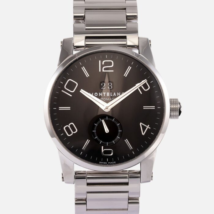 Discover sophistication with the Montblanc TimeWalker 7050, a testament to precision and style. This pre-owned timepiece, with its 43mm stainless steel case, exudes a captivating aura of strength and refinement.