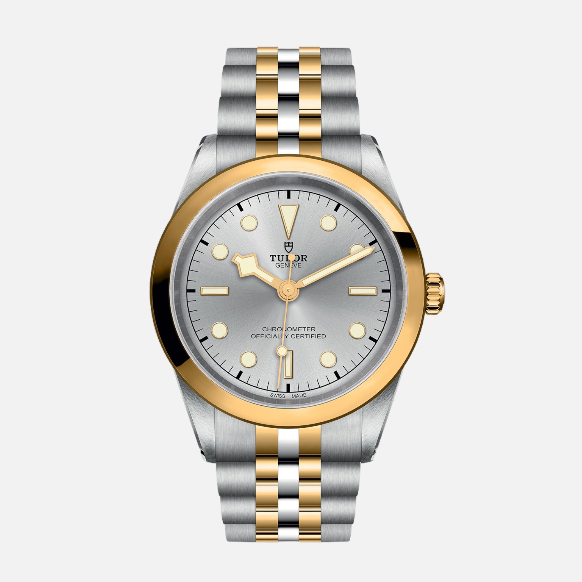 The watch features a 41mm steel case meticulously crafted with polished and satin finishes. Its exquisite appearance is crowned with a yellow gold screw-down winding crown adorned with the iconic TUDOR rose in relief – a symbol of heritage and elegance.